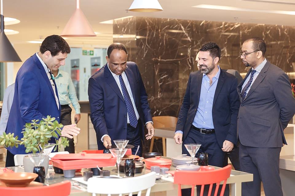 RAK Ceramics’ Chief Legal Counsel, Mr. George Rabahie welcomed the delegates from Tanzania, H.E. Mbarouk Nassor Mbarouk, Tanzanian Ambassador to UAE and Mr. Ali Jabir Mwadini, the Consulate General of Tanzania in Dubai, during their visit in the company’s main office in Ras Al Khaimah, UAE
